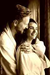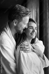 Beautiful young couple enjoying and relaxing in SPA center. People enjoying weekend, holiday
