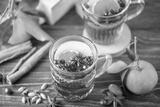 Homemade hot alcohol cranberry orange apple cider punch with cinnamon sticks, anise star and spices. Thanksgiving drink