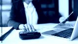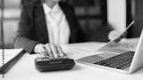 .Financial inspector calculating a numbers in office room..