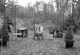 Fire pit and burning fire in a garden