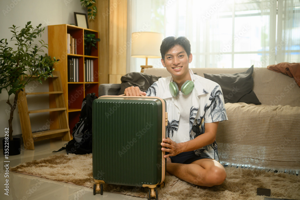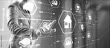 Businessman presses a button Smart home Automation Control System. Innovation technology