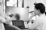 Team of young computer programmers cooperating while working on desktop PC in the office.