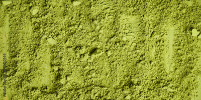Green powder. Matcha tea. Green texture. Top view.