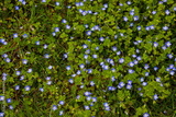 Summer background with blue flowers veronica chamaedrys. Blue flower bloom on green grass, spring background