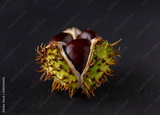 Chestnut fruit. Large and bright chestnuts, deep brown color