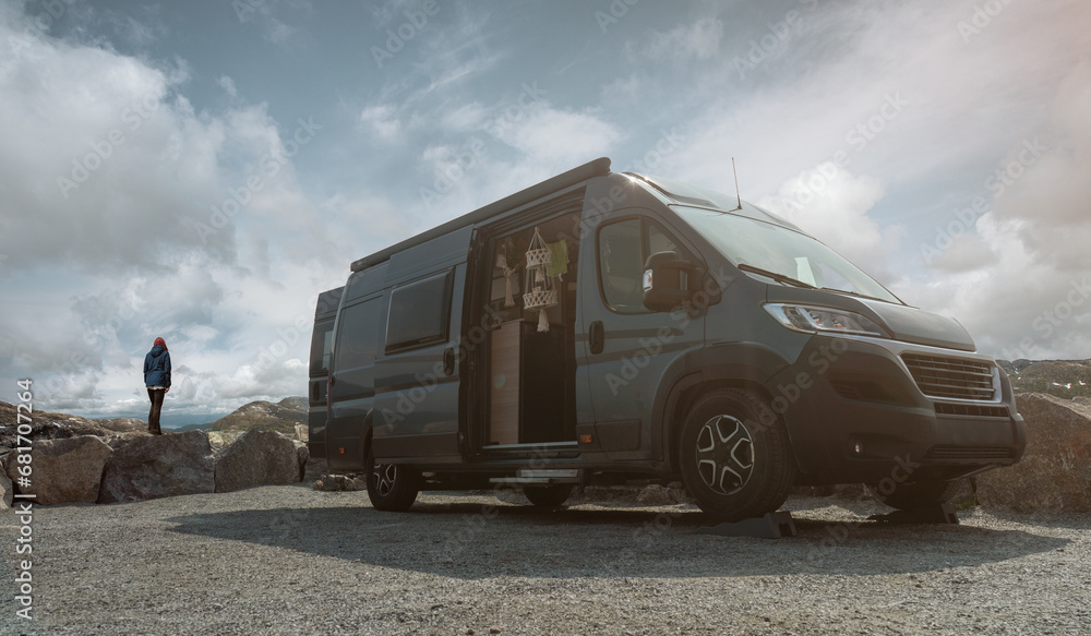 Frau genießt ihren Urlaub im Camper Van Camper Life
