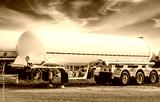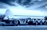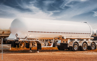 Flammable cargo. Full tank of petrol in the refinery ready for transport with a truck