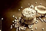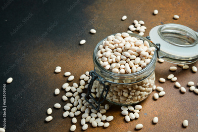 organic beans in a glass jar. Zero waste storage concept. Free space for text.