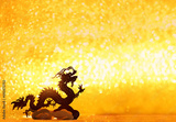 Silhouette of asian dragon on abstract light golden glittering background. lunar new year horoscope symbol. Chinese dragon - symbol of deity, wisdom, good start, Imperial power. element for design.