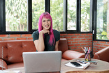 Asian transgender Pink Hair Working on Design Business Gender equality LGBTQ+ concept