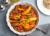 Traditional Homemade Turkish Food Kofte - Kofta with Tomato Sauce and Potatoes. (Turkish name; Izmir kofte)