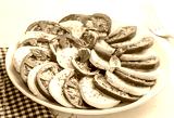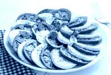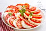 Italian caprese salad with sliced tomatoes, mozzarella, basil, olive oil