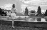 Back view of tourist girl standing with map and looking at the city attraction. Travel and active lifestyle concept
