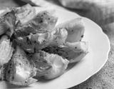 Organic Baked Fennel Bulbs with Salt and Pepper. Fennel dish with olive oil.