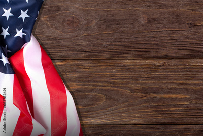 American flag on grey wooden background. Independence day.