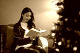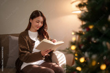 Young asian women sitting on comfortable the couch to opening the book and reading literature while enjoying and happiness for relaxation time in living room with lifestyle at home