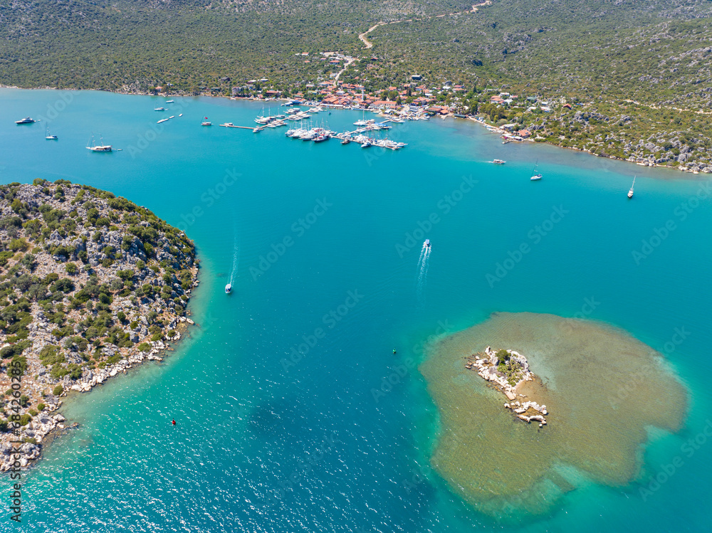 Aerial view with drone. Kalekoy - Simena - Kekova - Turkey.