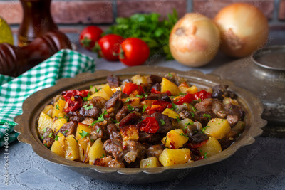 From Turkish cuisine; meat, vegetable kebab, casserole. Turkish name; Maras Tava or Kahramanmaras Tava - Orman Kebabi