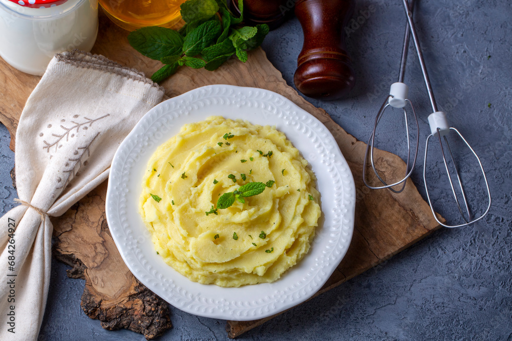 Serving of creamy mashed potato made from boiled potatoes