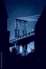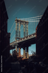 New York City Brooklyn old buildings and bridge in Dumbo, stylized, vintage