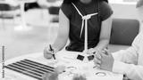 Two college students research and study for green energy business.