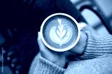 A woman in a cosy knitted sweater holding a cup of hot cappuccino, enjoying morning coffee at cafe.