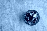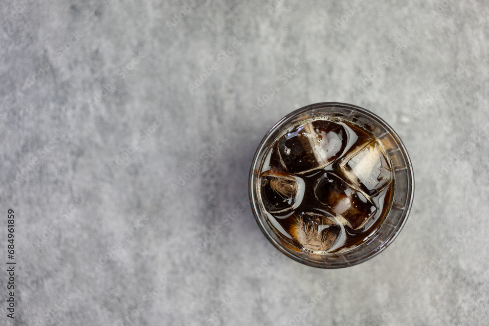 Top view of americano coffee glass shown ice and black coffee. Close up