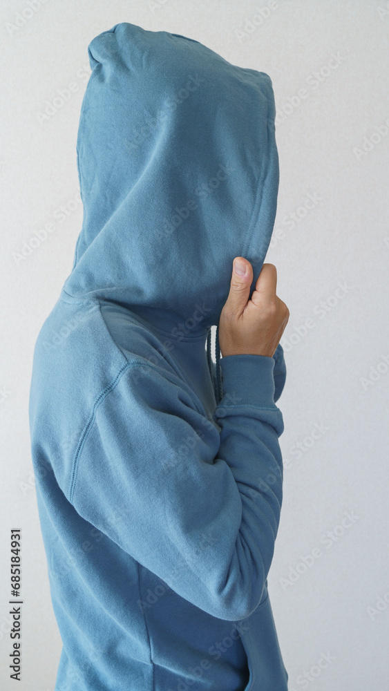 パーカーのフードを被る人 不審者イメージ