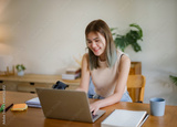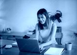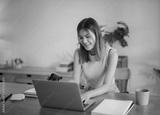 Creative designer woman using laptop to checking photo and working graphic design in home studio..