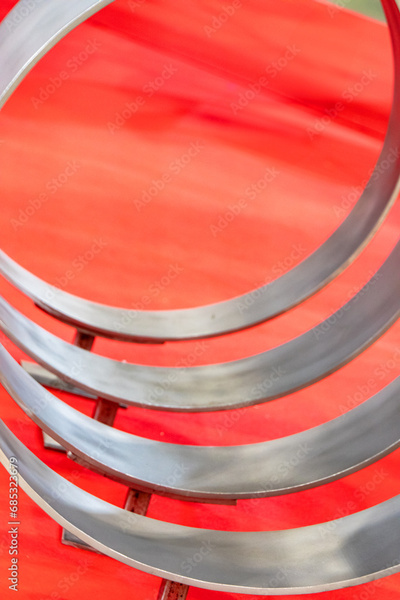 Metal support rings for a large-diameter pipeline.