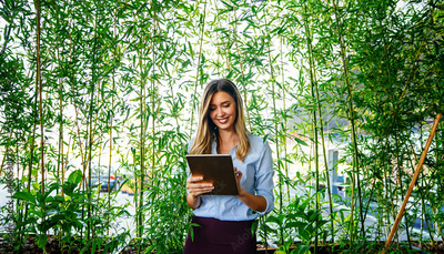 Green economy growth concept with businesswoman. Concept of pass and increase of renewable energy.