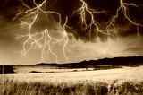 thunderstorm with lightning in wheat land