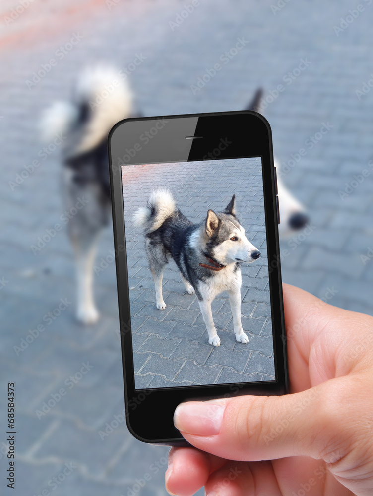 photo self dog with smartphone