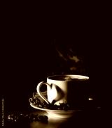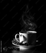 Coffee love. Warm cup of coffee on black background