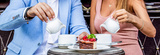 Couple drinking cappuccino at bar coffee shop. Couple in having coffee in cafe. Drinking coffee. Happy romantic couple sitting in a cafe drinking coffee