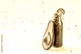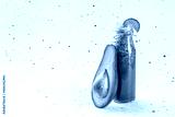 healthy green smoothies with avocado and lime on a light background top view. copy space