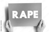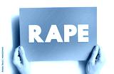 Rape is a type of sexual assault, carried out against a person without their consent, text concept on card