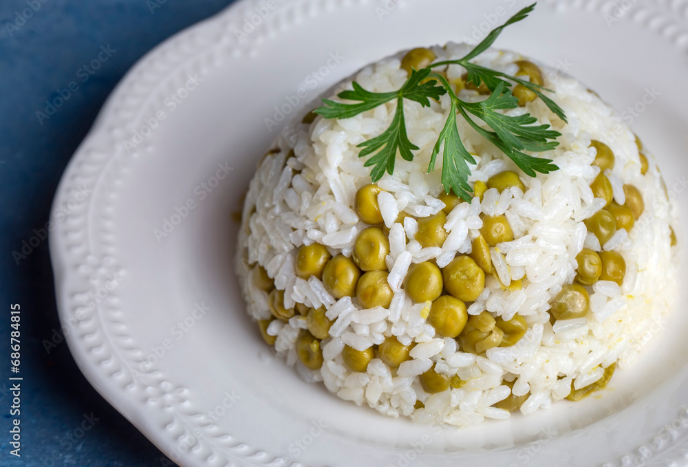 Traditional delicious Turkish foods; pea rice (Turkish name; Bezelyeli pilav)