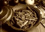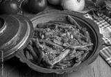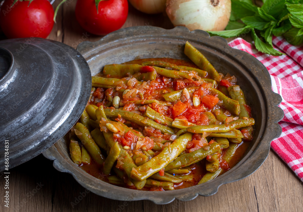 Traditional delicious Turkish food; Green beans with olive oil; Turkish name; Zeytinyagli taze fasulye