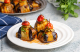 Traditional delicious Turkish food; Kofte kebab wrapped in eggplant (Turkish name; Islim - islim kebabi or kurdan kebabi)