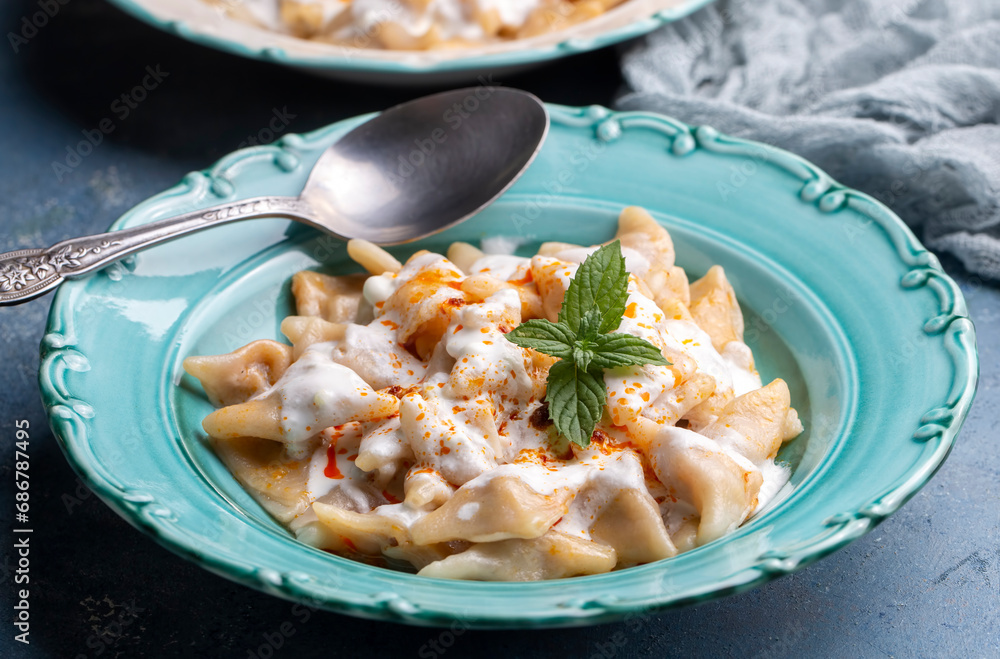 Traditional Turkish cuisine; Turkish ravioli, Turkish name; Manti, ucgen manti