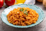 Traditional turkish bulgur pilaf with tomato sause in plate (Turkish name; meyhane pilavi)