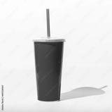 Blank red paper cup, takeaway mug to go for cold drink with straw