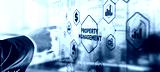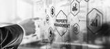 Businessman pressing PROPERTY MANAGEMENT button on virtual screens