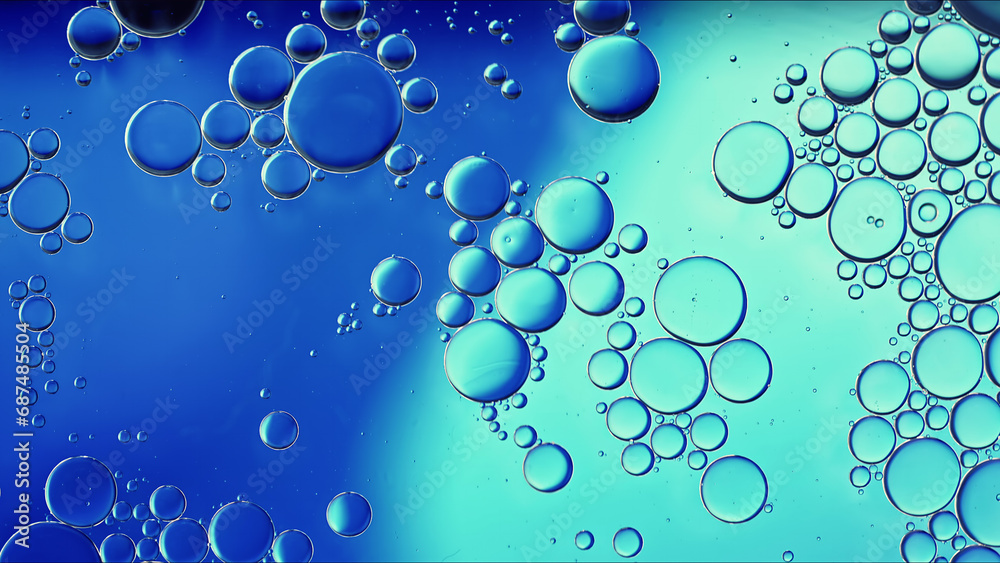 Abstract Colorful Food Oil Drops Bubbles and spheres Flowing on Water Surface