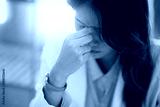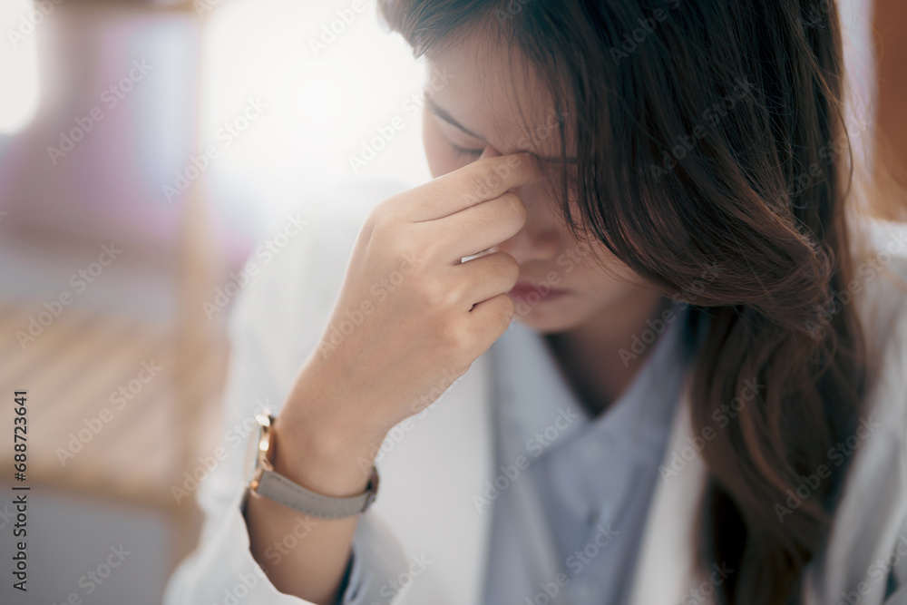 Tired asian business woman overworking and headache stressed in office