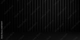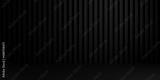 Black geometric wall in empty studio space. Dark abstract background for product placement. Brand template design.