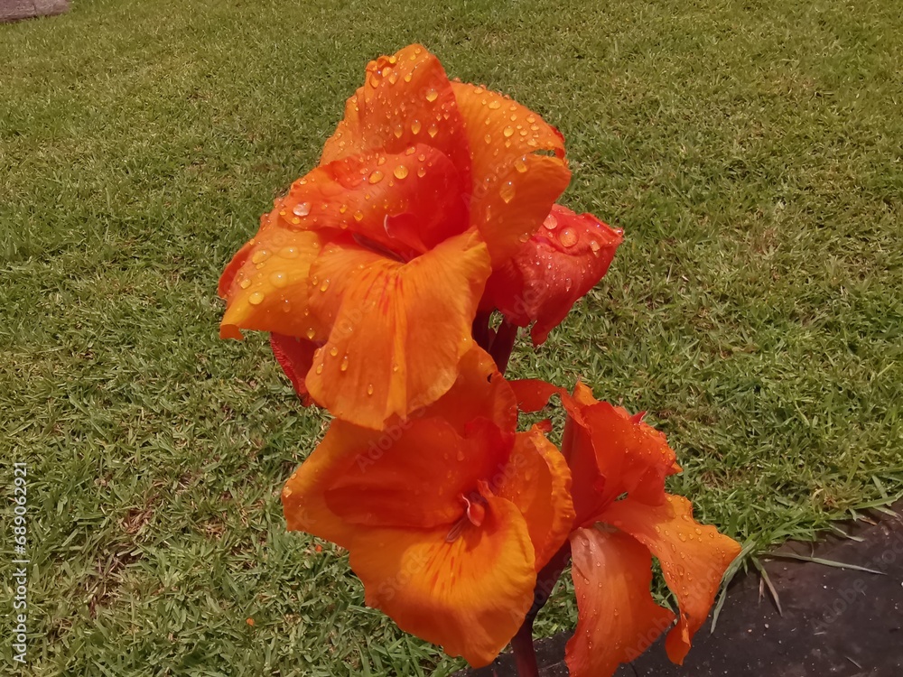 Close-up view of bright, beautiful and colorful canna lily flower