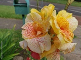 Close-up view of bright, beautiful and colorful canna lily flower