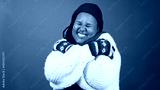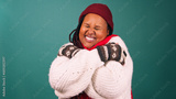 Beautiful young woman embraces herself, self love, love yourself concept studio